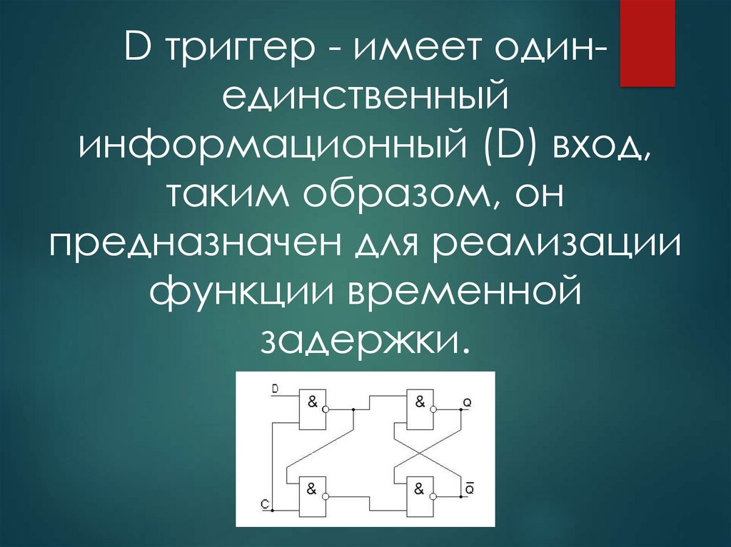 D триггер - имеет одинединственныйинформационный (D) вход,