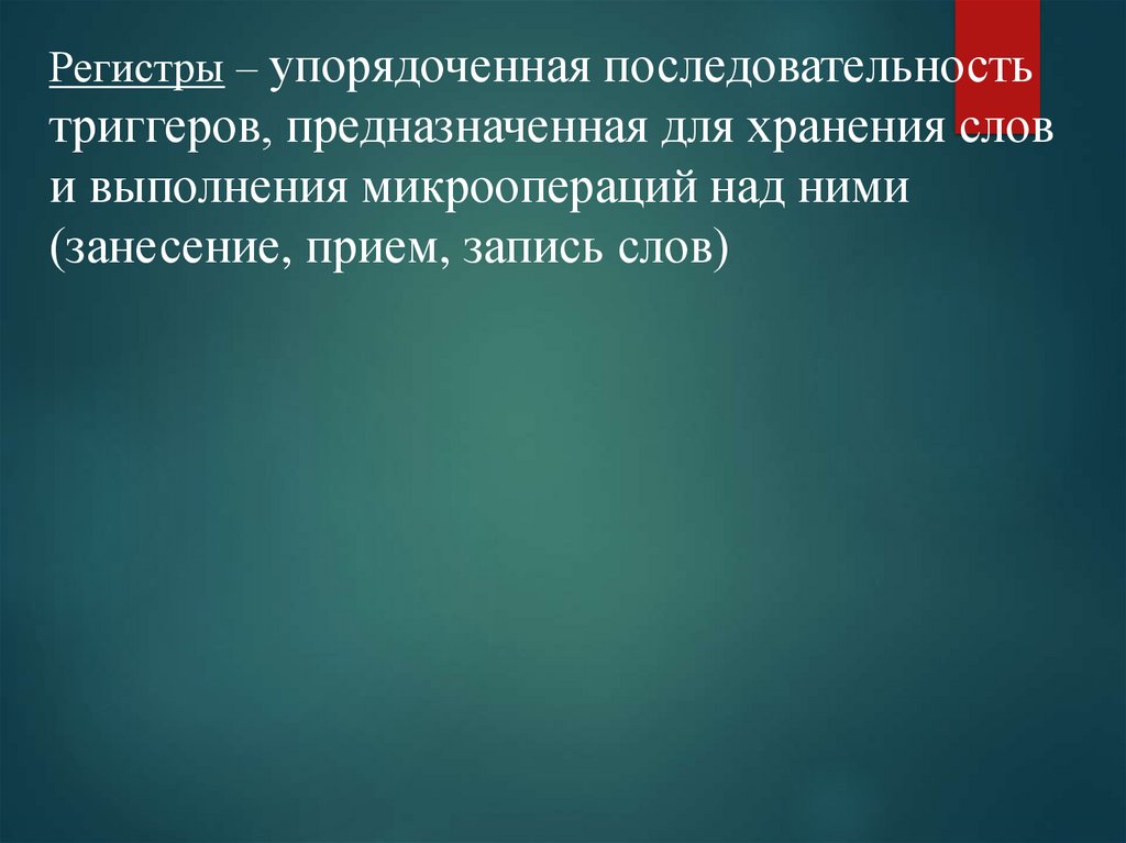 Регистры – упорядоченная последовательностьтриггеров, предназначенная для хранения слов