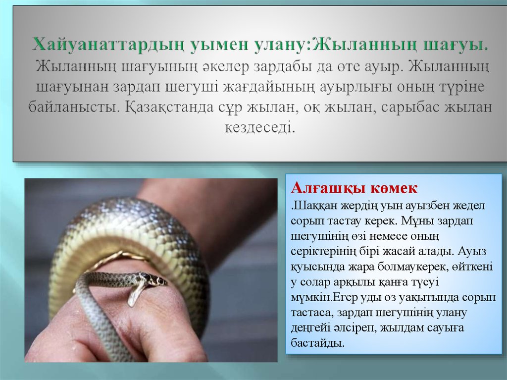 Алғашқы көмек.Шаққан жердің уын ауызбен жедел