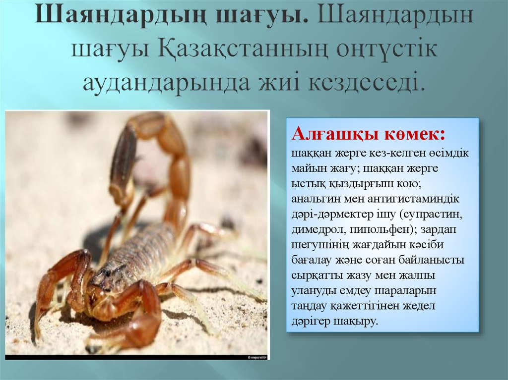 9. Шаяндардың шағуы. Шаяндардын шағуы Қазақстанның оңтүстік аудандарында жиі кездеседі.