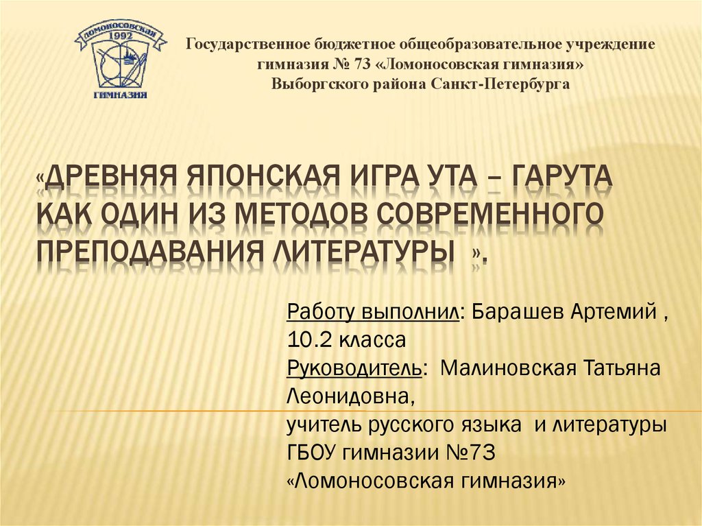 1. «Древняя японская игра ута – гарута как один из методов современного преподавания литературы ».