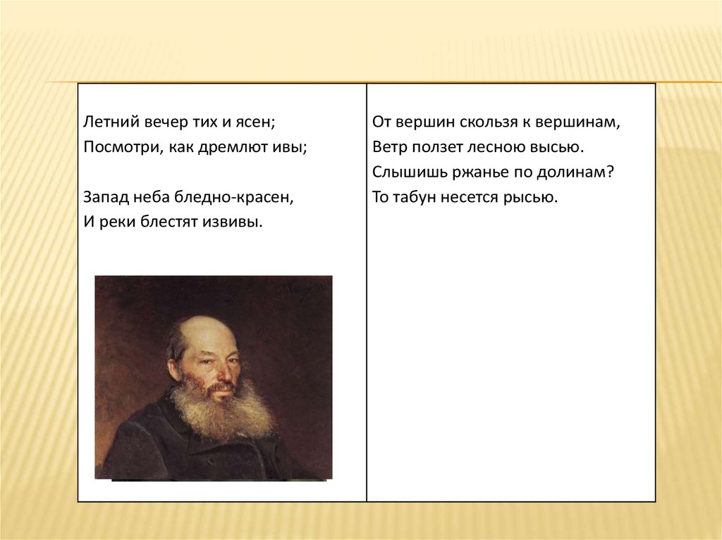 Летний вечер тих и ясен;Посмотри, как дремлют ивы;