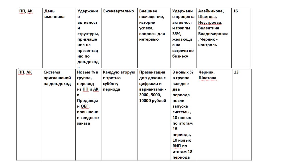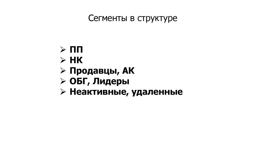 • Сегменты структуры + запланированный результат по