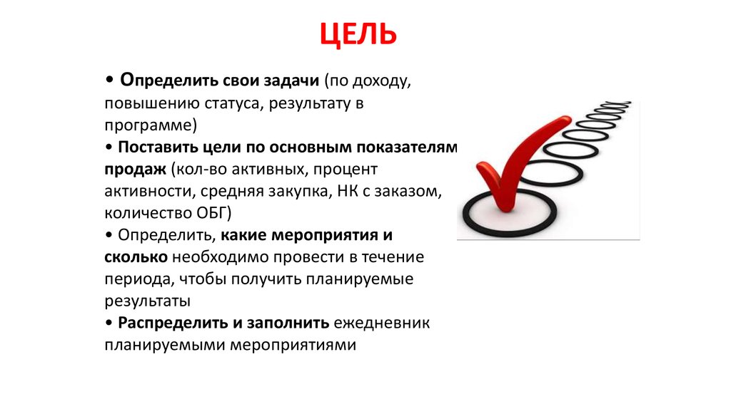 ЦЕЛЬ• Определить свои задачи (по доходу,