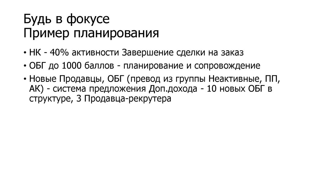 Будь в фокусеПример планирования