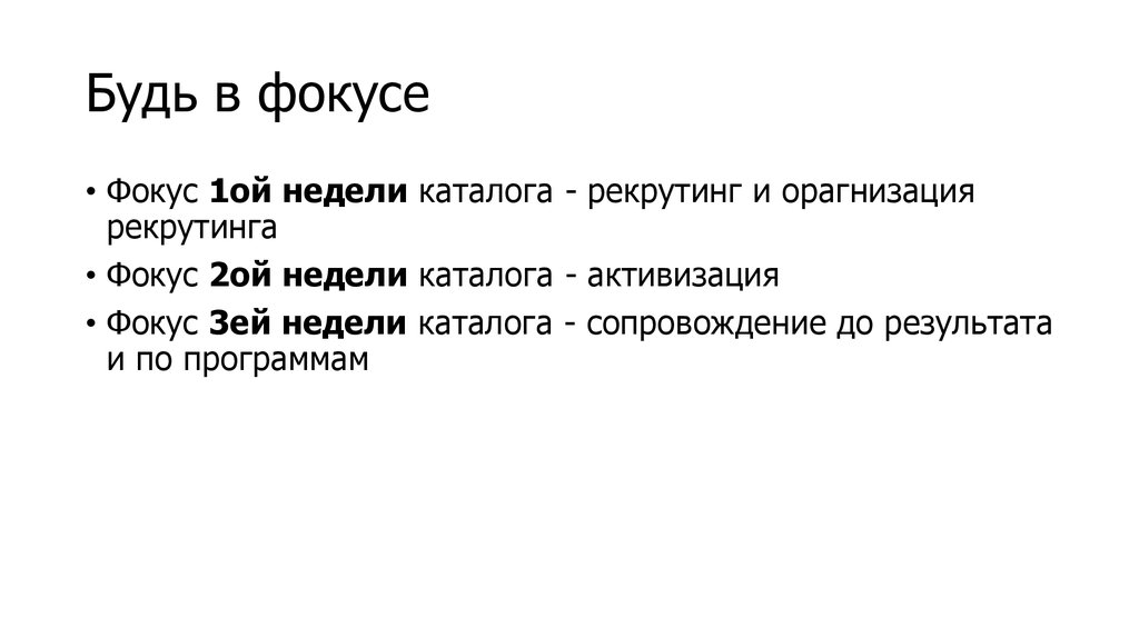 Будь в фокусе• Фокус 1ой недели каталога - рекрутинг и орагнизация