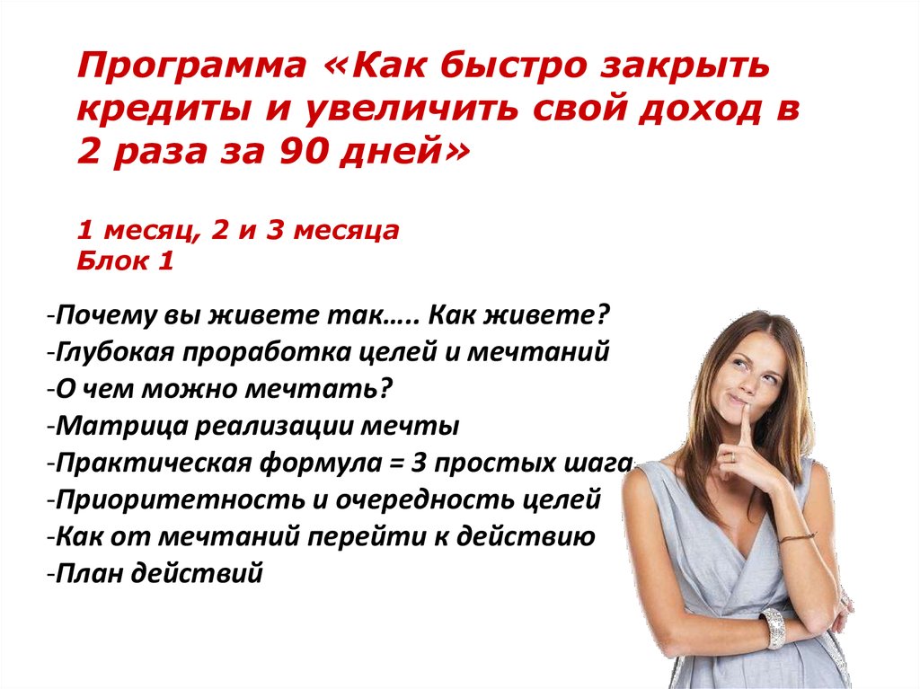 Программа «Как быстро закрыть кредиты и увеличить свой доход в 2 раза за 90 дней»