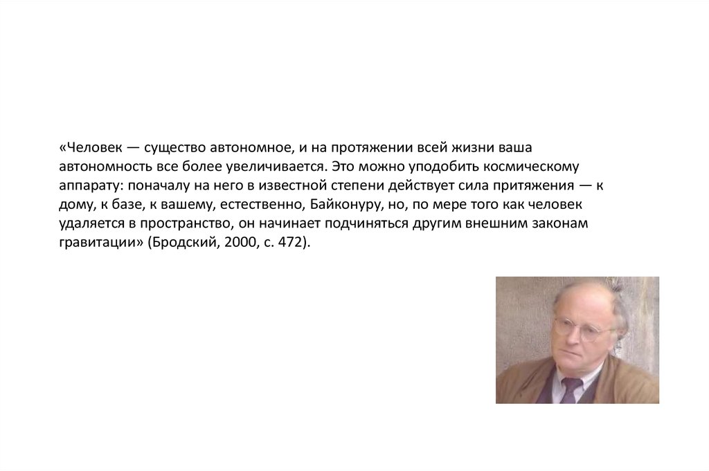 «Человек — существо автономное, и на протяжении всей жизни вашаавтономность все более увеличивается. Это можно уподобить космическому
