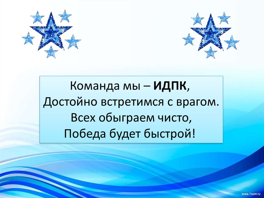 Команда мы – ИДПК,Достойно встретимся с врагом.