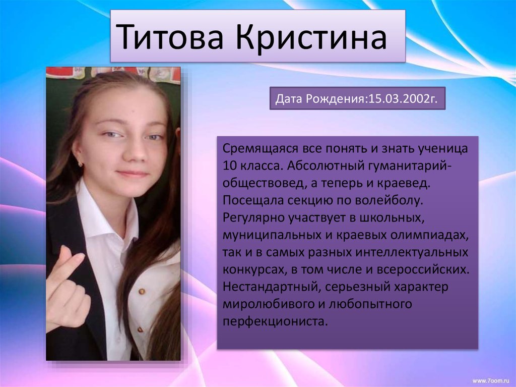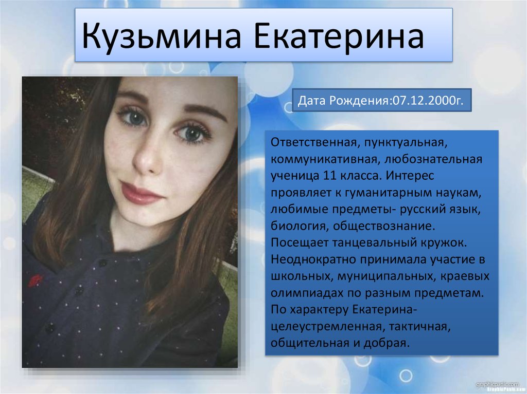 Кузьмина ЕкатеринаДата Рождения:07.12.2000г.