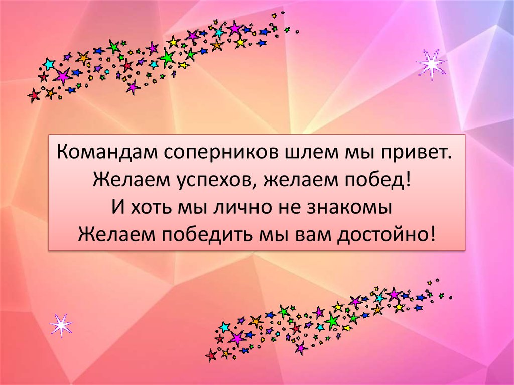 Командам соперников шлем мы привет.Желаем успехов, желаем побед!