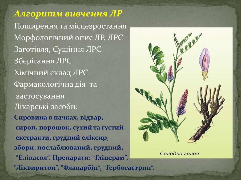 Rаdісеs Glусуrrhіzае – корені солодкиGlусуrrhіzа glаbrа – солодка гола