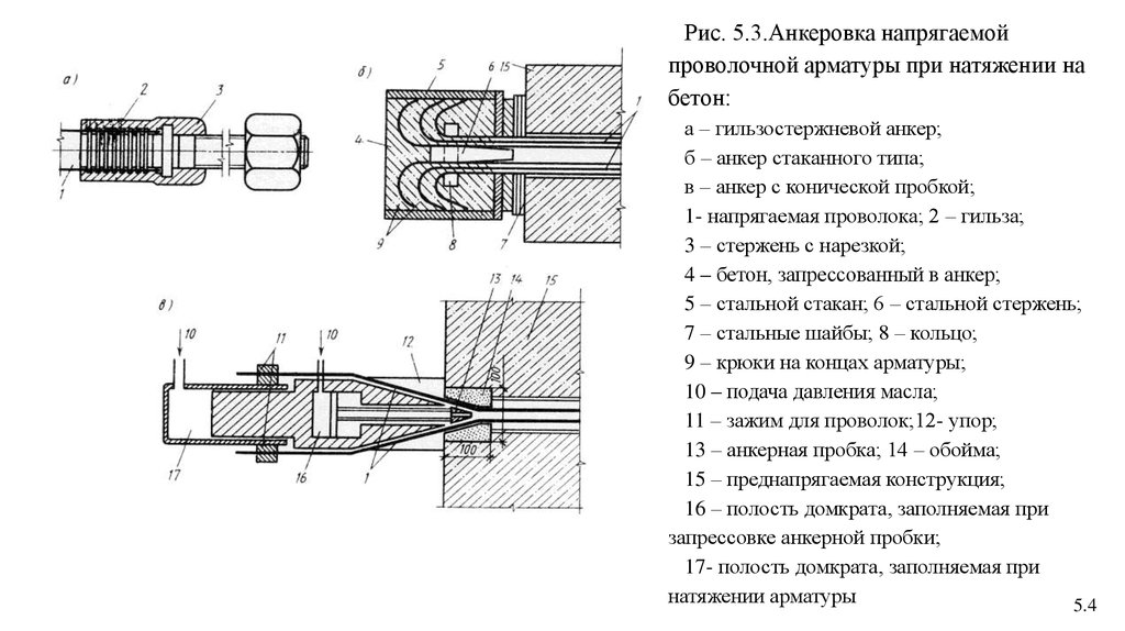 Рис. 5.3.Анкеровка напрягаемойпроволочной арматуры при натяжении на
