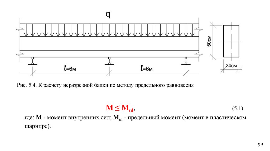 Рис. 5.4. К расчету неразрезной балки по методу предельного равновесияM ≤ Mul,