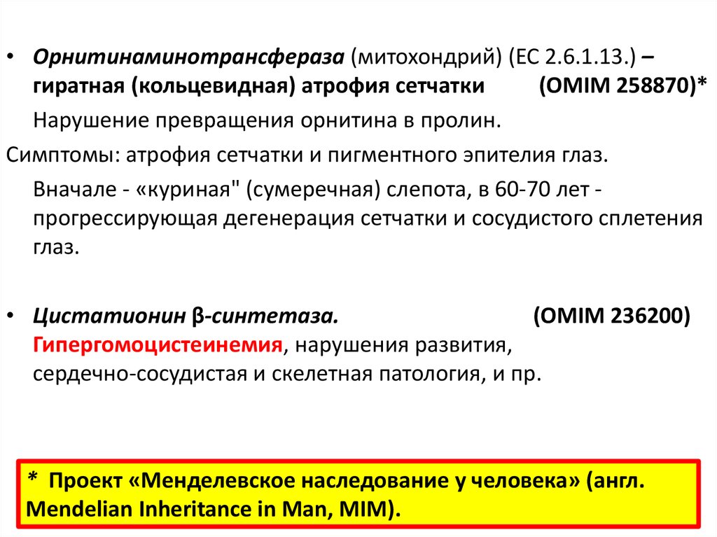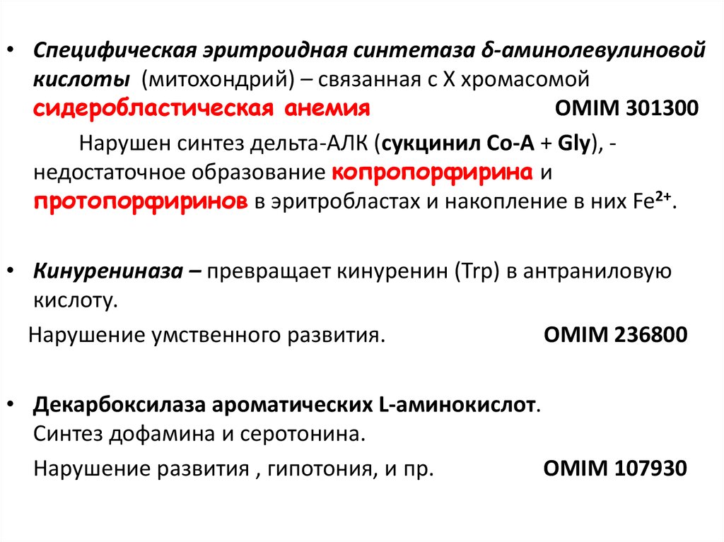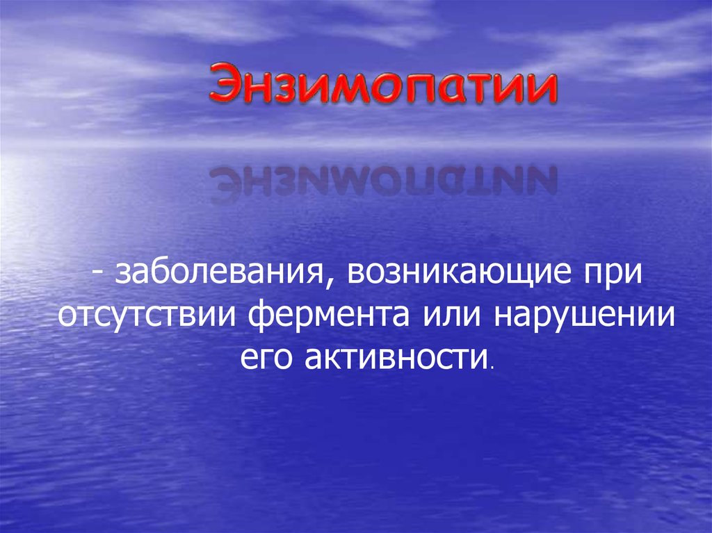 - заболевания, возникающие приотсутствии фермента или нарушении