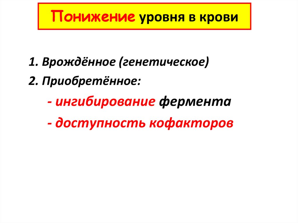 Понижение уровня в крови1. Врождённое (генетическое)