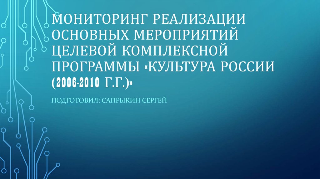 Мониторинг реализации основных мероприятий целевой комплексной программы "Культура России (2006-2010 г.г.)"