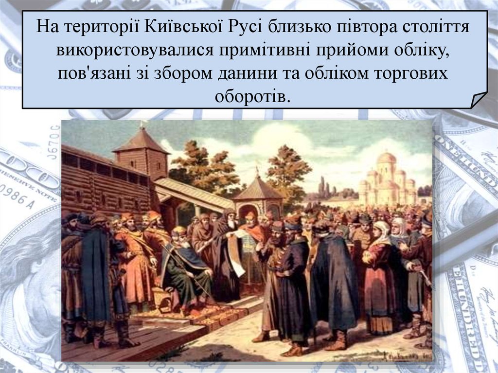 На території Київської Русі близько півтора століттявикористовувалися примітивні прийоми обліку,