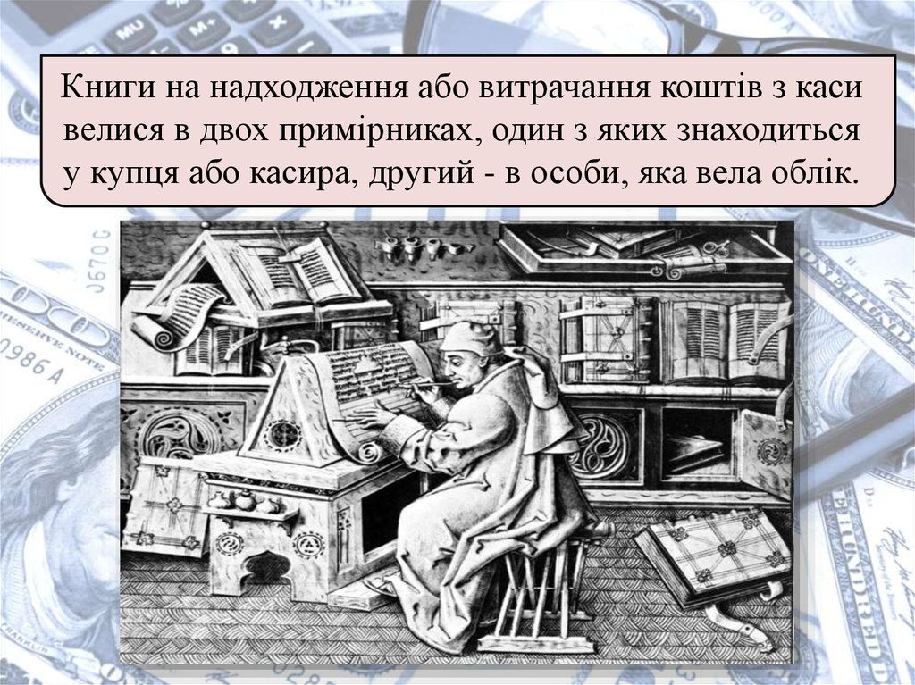 13. Книги на надходження або витрачання коштів з каси велися в двох примірниках, один з яких знаходиться у купця або касира, другий