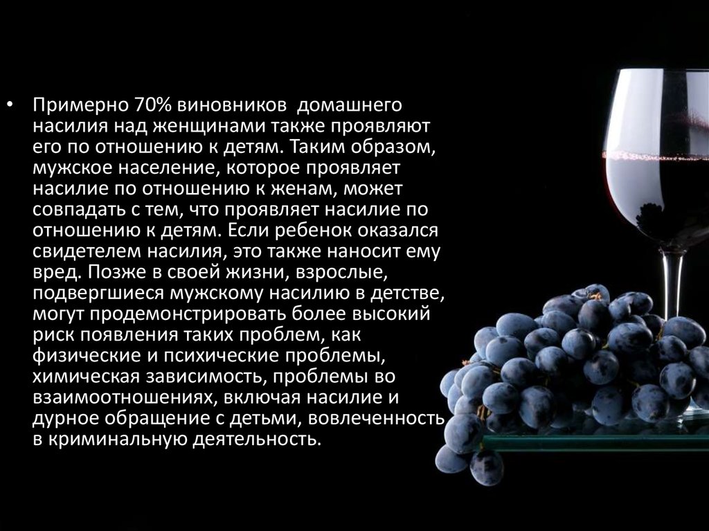 • Примерно 70% виновников домашнегонасилия над женщинами также проявляют