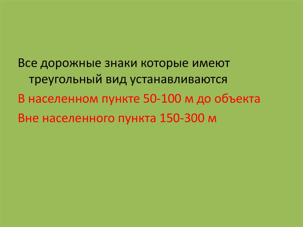 Все дорожные знаки которые имеюттреугольный вид устанавливаются