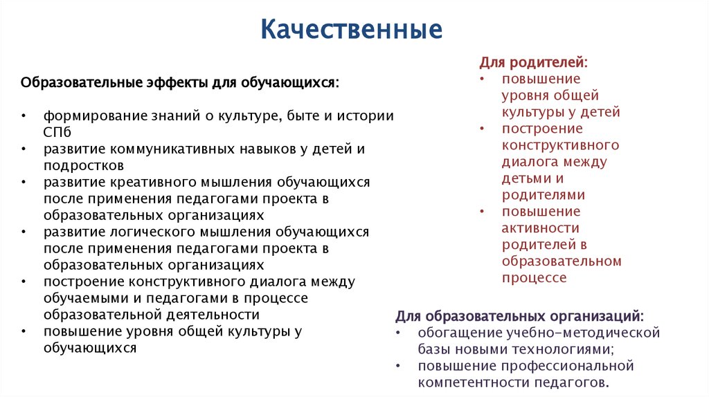 КачественныеОбразовательные эффекты для обучающихся: