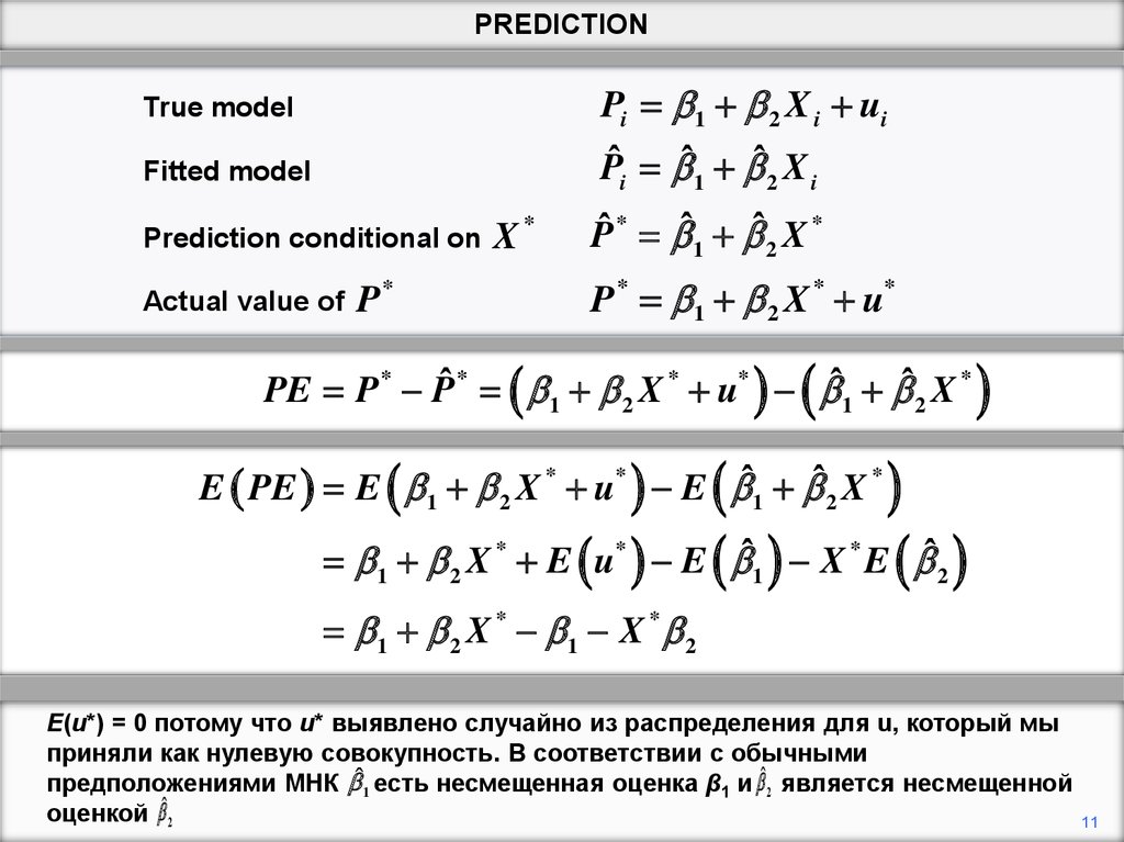 единственным источником ошибки в прогнозировании будет u*, и по определению оно