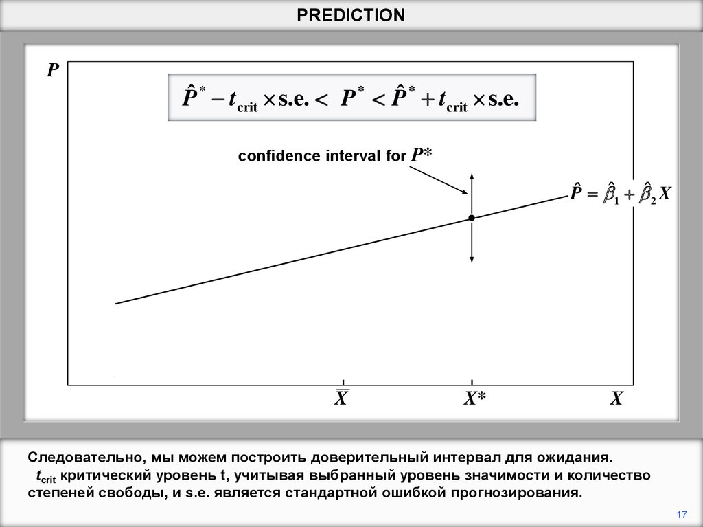 степеней свободы, и s.e. является стандартной ошибкой прогнозирования.