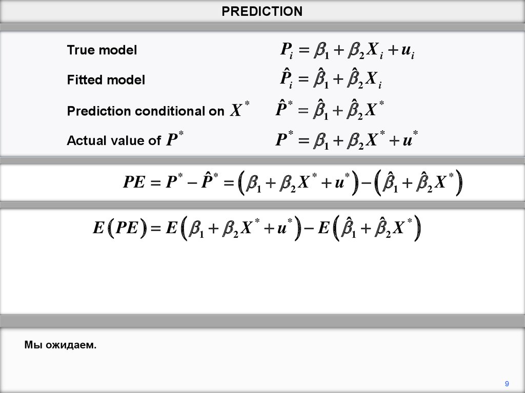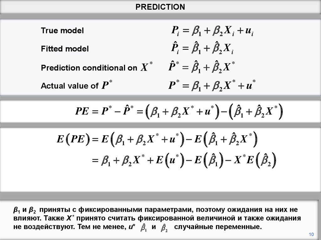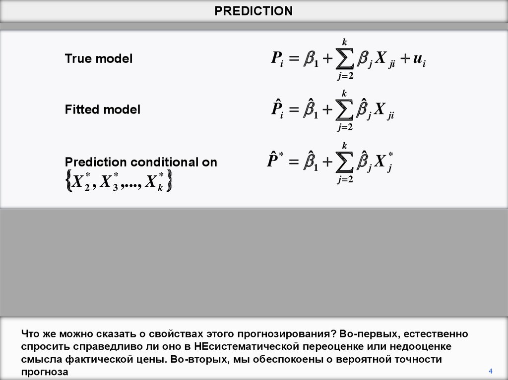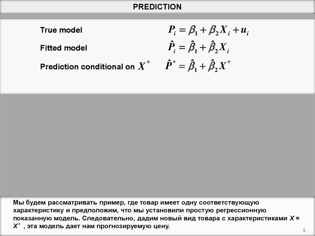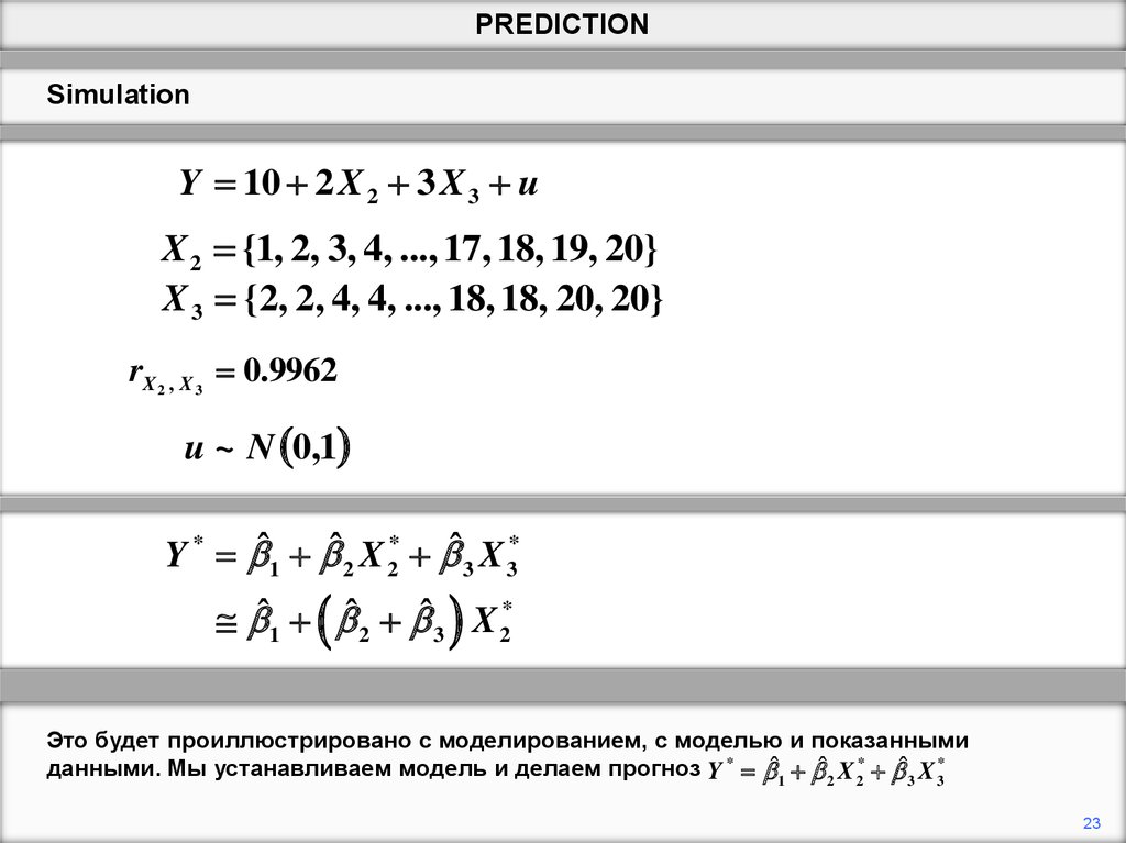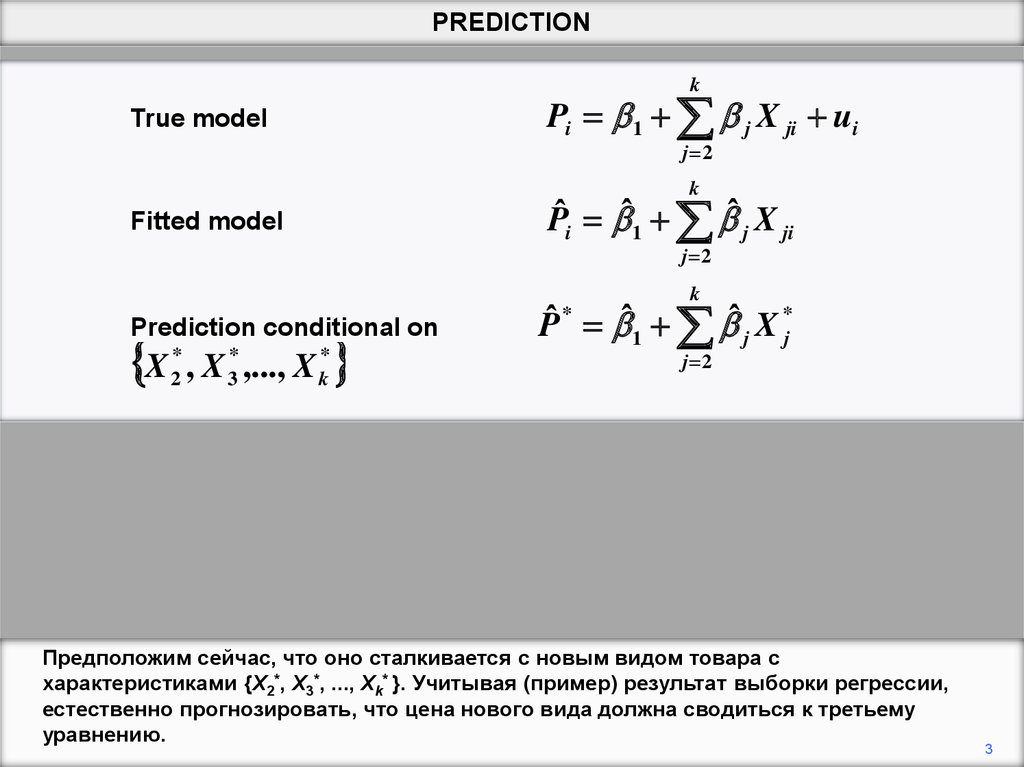 данными. Мы устанавливаем модель и делаем прогноз Y * ˆ1 ˆ2 X 2* ˆ3 X 3*