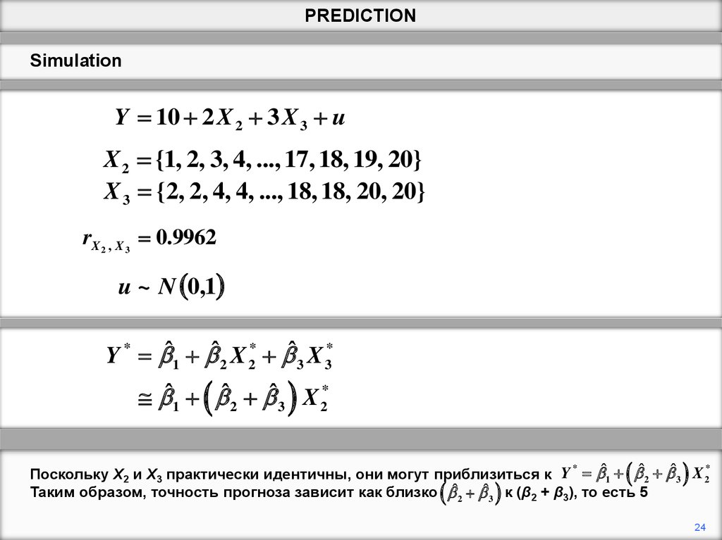 Таким образом, точность прогноза зависит как близко ˆ2 ˆ3 к (β2 + β3), то есть 5