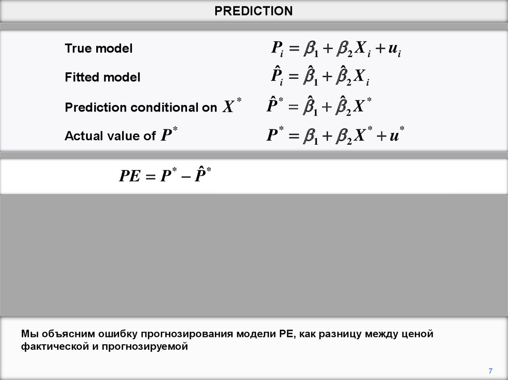 Мы объясним ошибку прогнозирования модели PE, как разницу между ценой