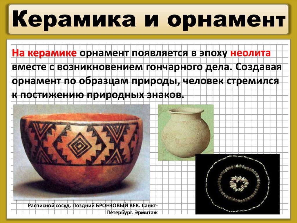 Керамика и орнаментНа керамике орнамент появляется в эпоху неолита
