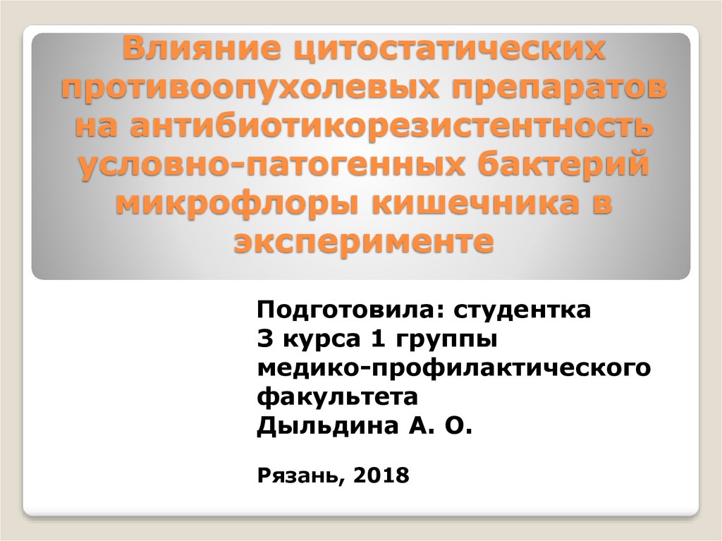 1. Влияние цитостатических противоопухолевых препаратов на антибиотикорезистентность условно-патогенных бактерий микрофлоры