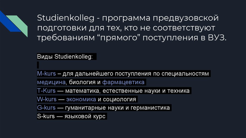 Studienkolleg - программа предвузовскойподготовки для тех, кто не соответствуют