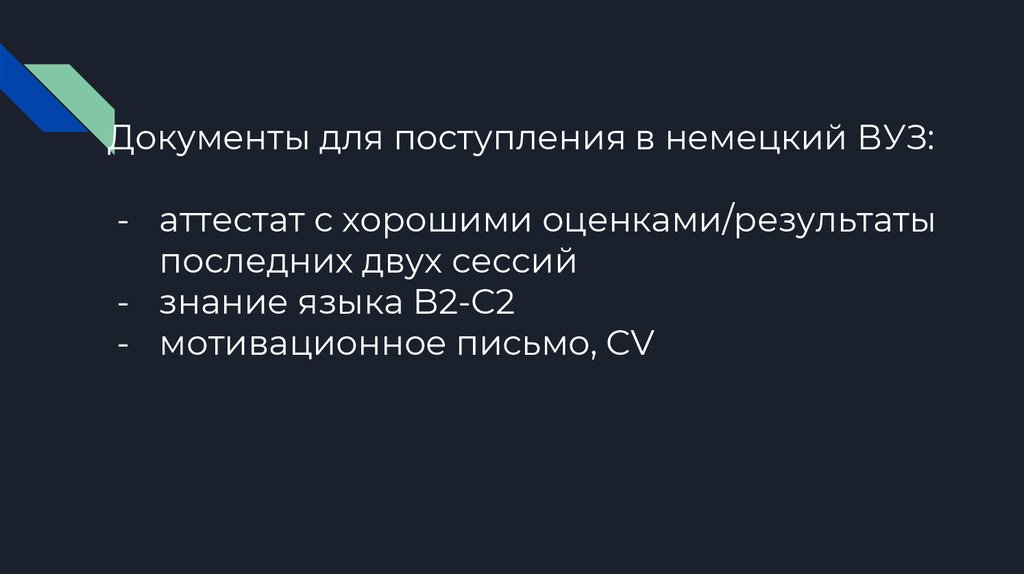 Документы для поступления в немецкий ВУЗ:- аттестат с хорошими оценками/результаты