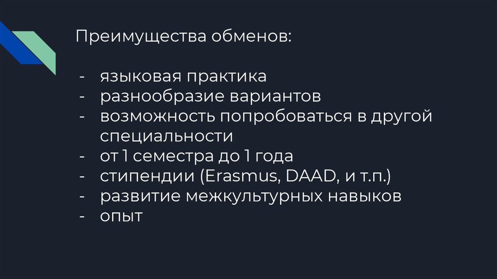 Преимущества обменов:- языковая практика