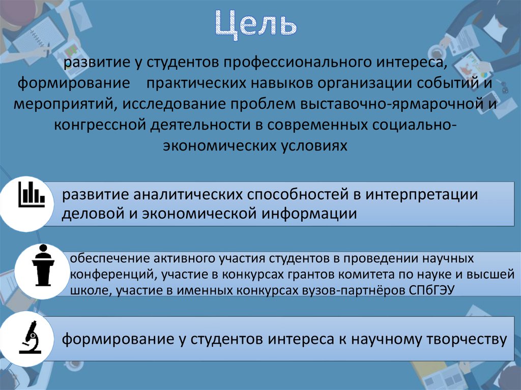 развитие у студентов профессионального интереса,формирование практических навыков организации событий и