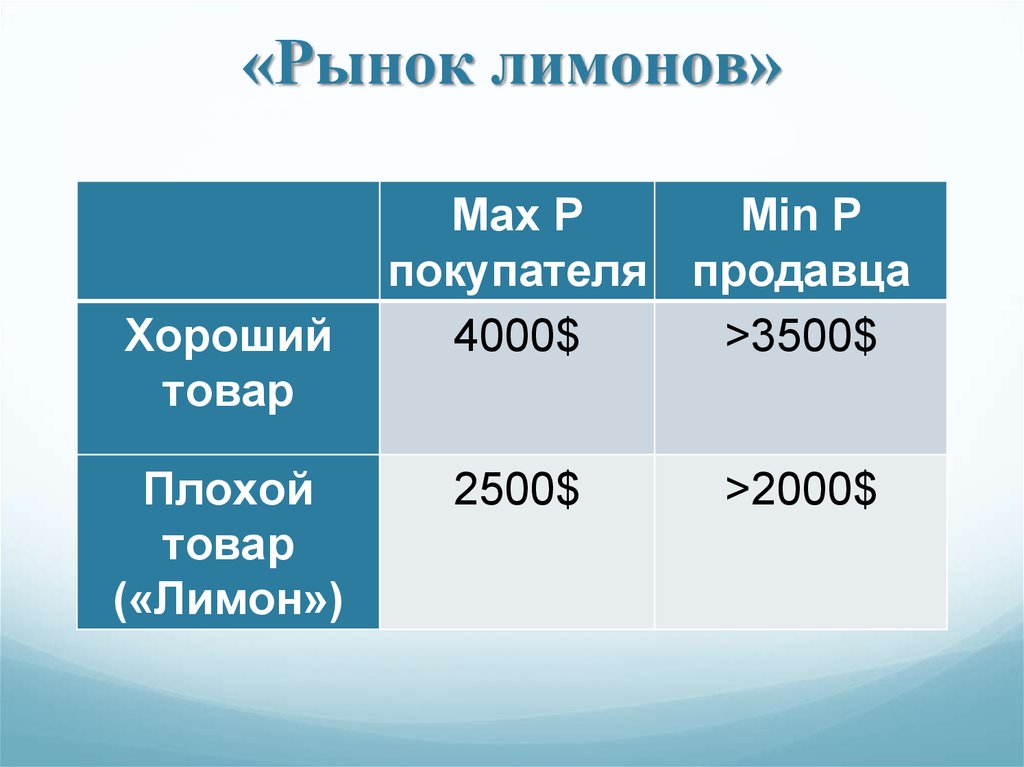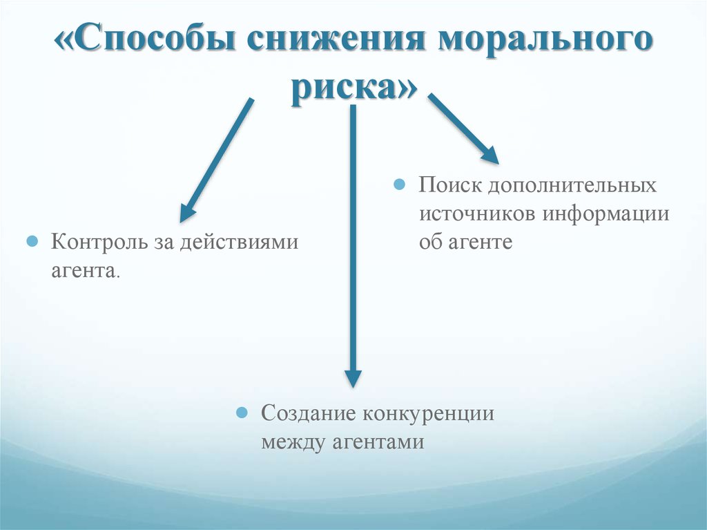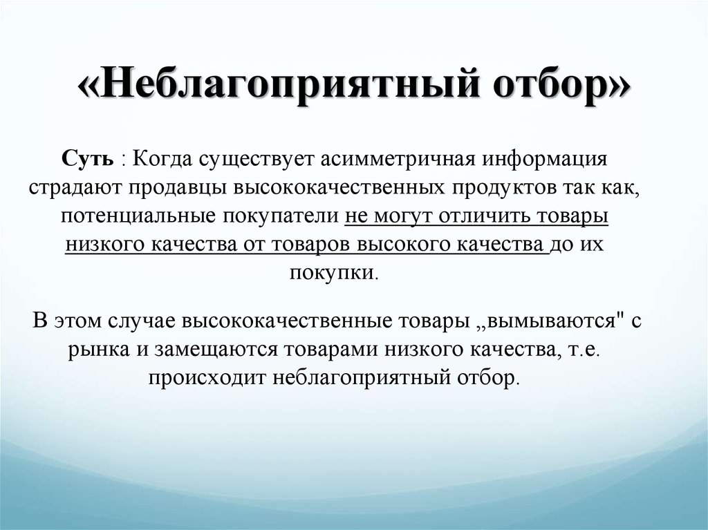 «Неблагоприятный отбор»Суть : Когда существует асимметричная информация