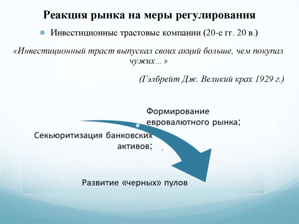 Реакция рынка на меры регулирования● Инвестиционные трастовые компании (20-е гг. 20 в.)