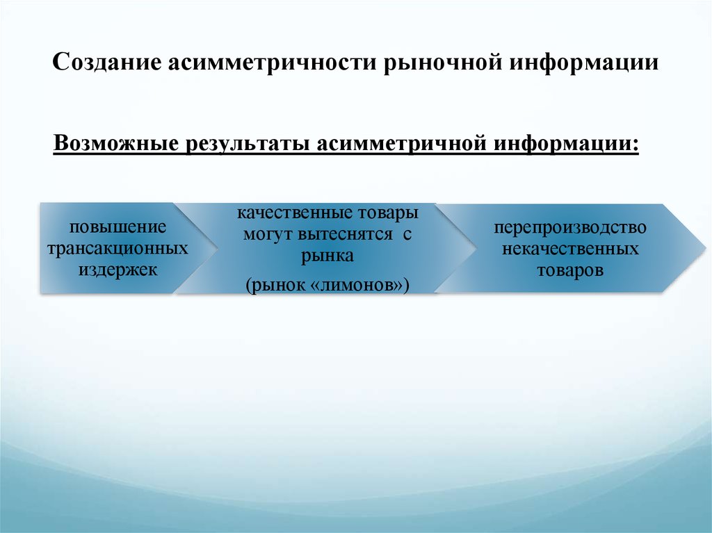 Создание асимметричности рыночной информацииВозможные результаты асимметричной информации: