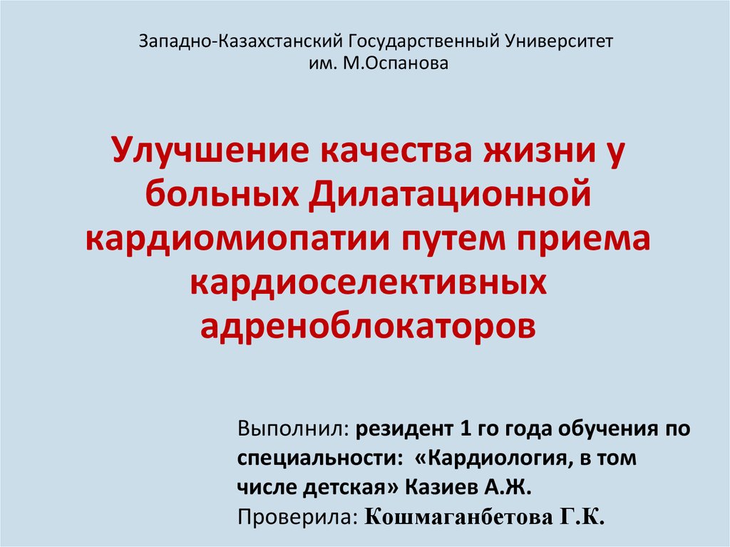 Улучшение качества жизни у больных дилатационной кардиомиопатии путем приема кардиоселективных адреноблокаторов
