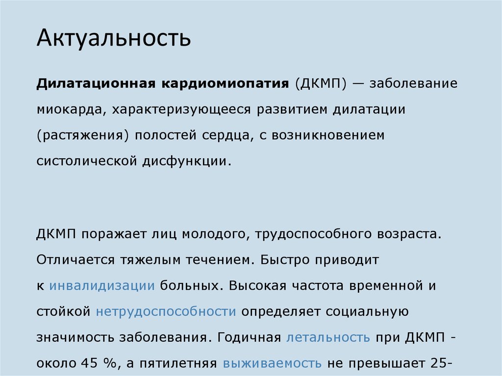 АктуальностьДилатационная кардиомиопатия (ДКМП) — заболевание