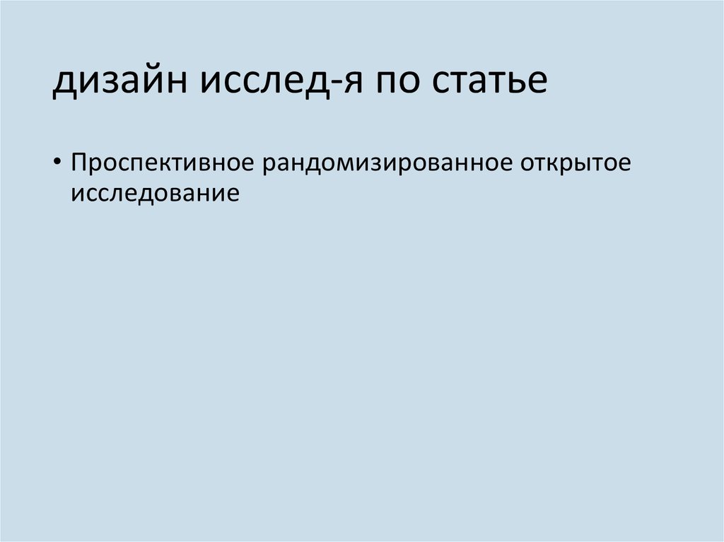 дизайн исслед-я по статье• Проспективное рандомизированное открытое