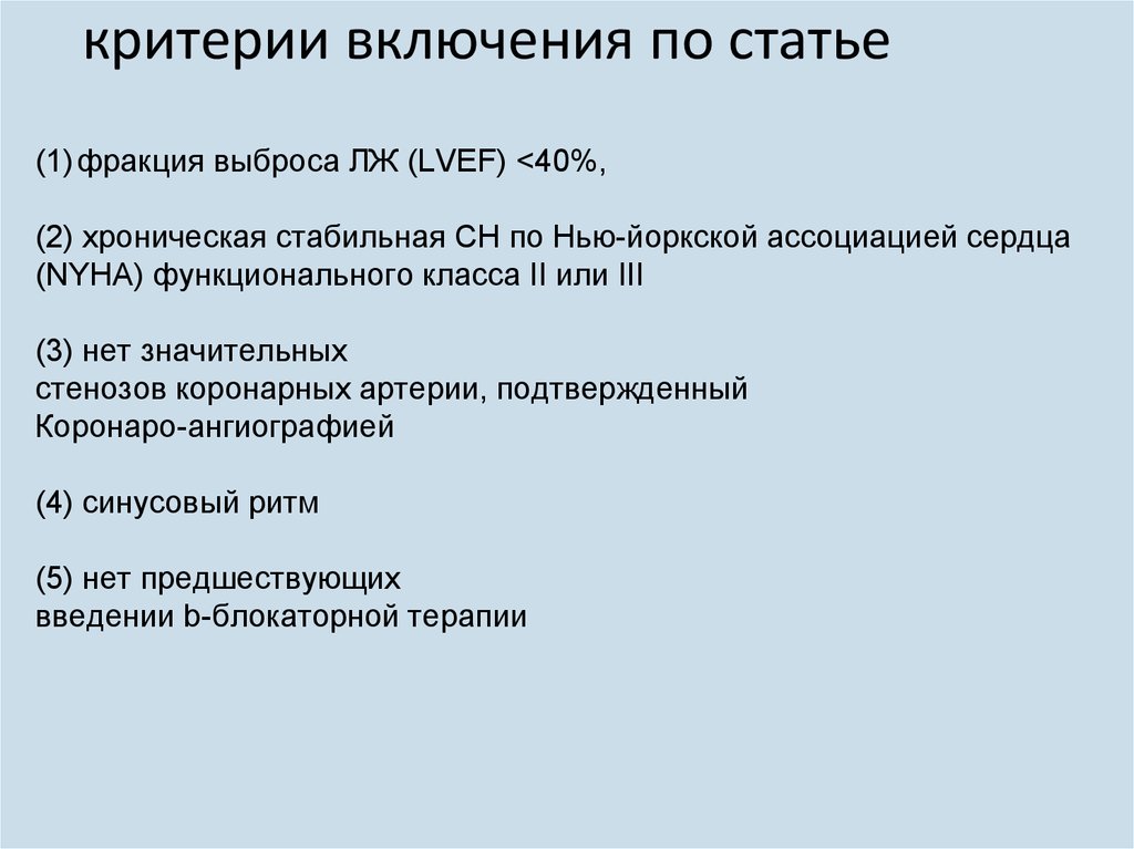 критерии включения по статье(1)фракция выброса ЛЖ (LVEF) <40%,