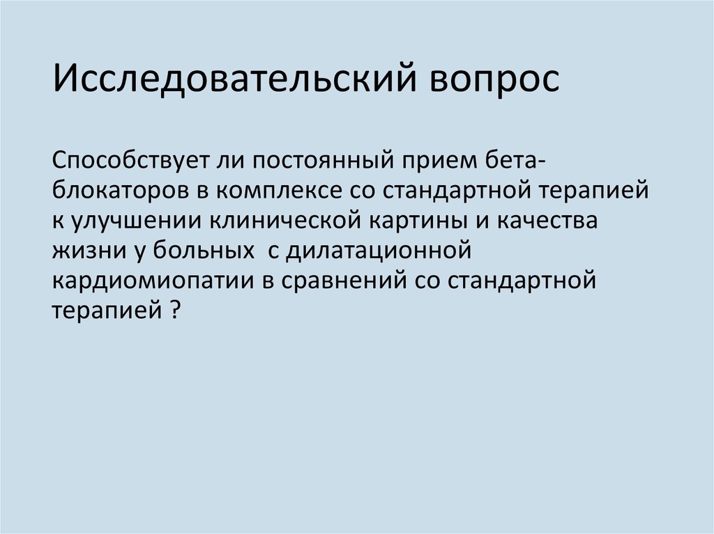 Исследовательский вопросСпособствует ли постоянный прием бетаблокаторов в комплексе со стандартной терапией