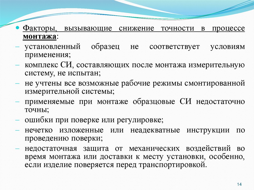 Факторы, вызывающие снижение точности в процессемонтажа: