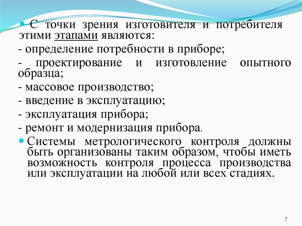 С точки зрения изготовителя и потребителяэтими этапами являются: