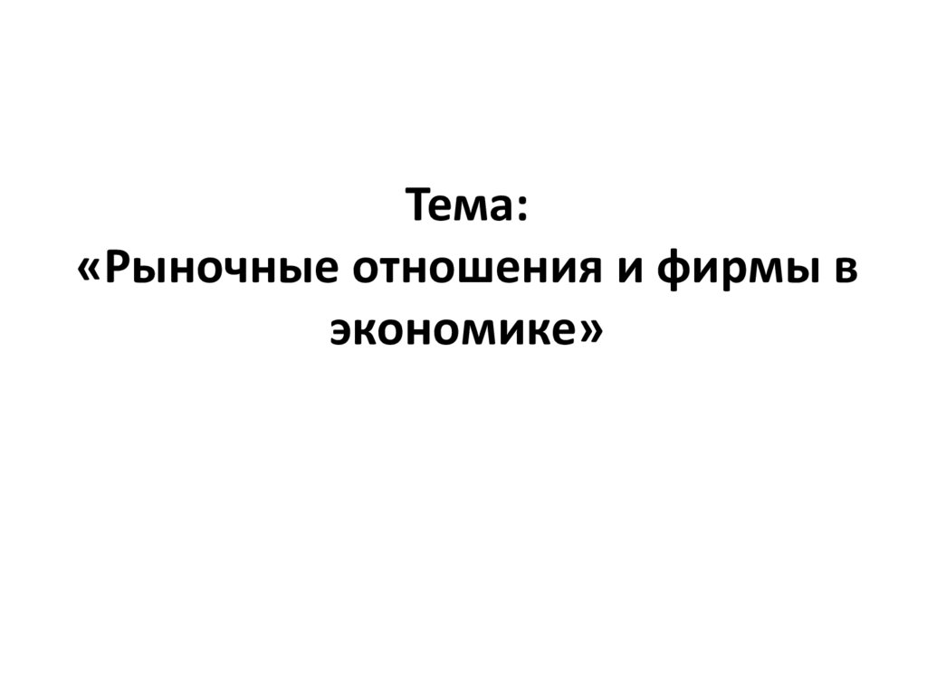 1. Тема: «Рыночные отношения и фирмы в экономике»