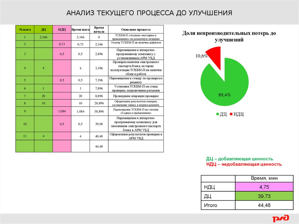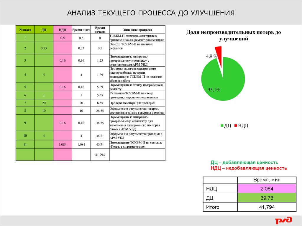 АНАЛИЗ ТЕКУЩЕГО ПРОЦЕССА ДО УЛУЧШЕНИЯ№ шага