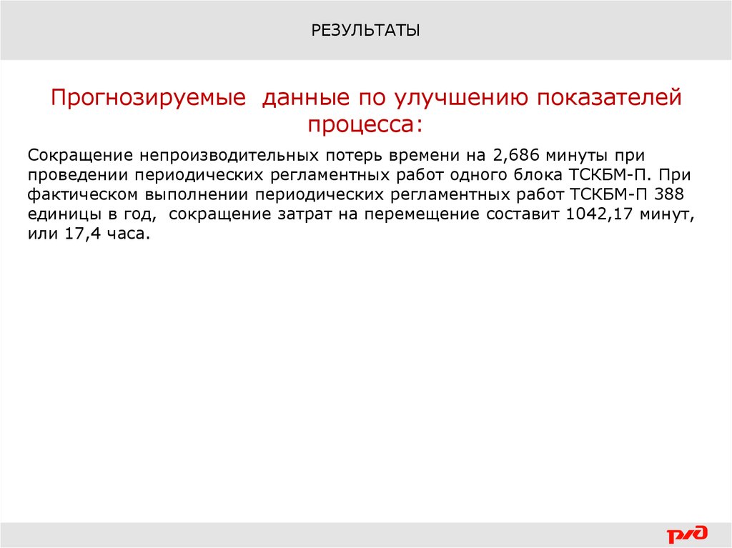 РЕЗУЛЬТАТЫПрогнозируемые данные по улучшению показателей